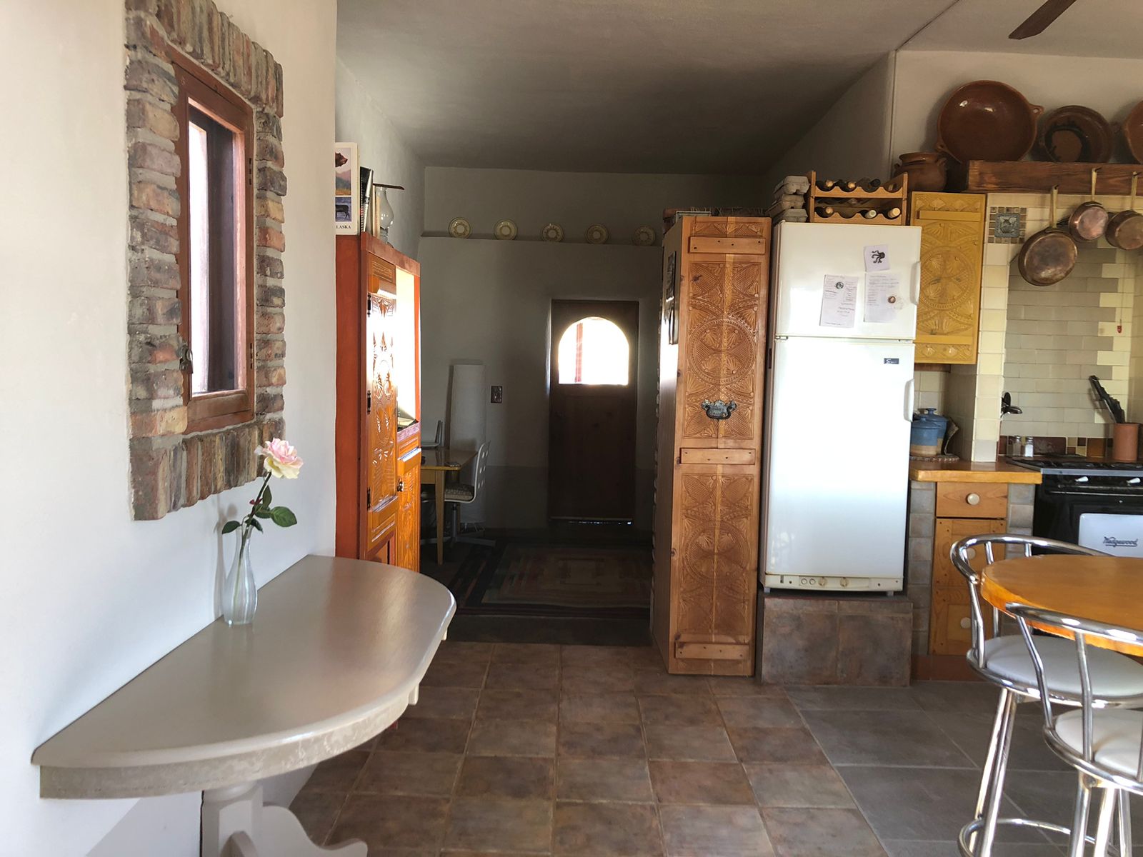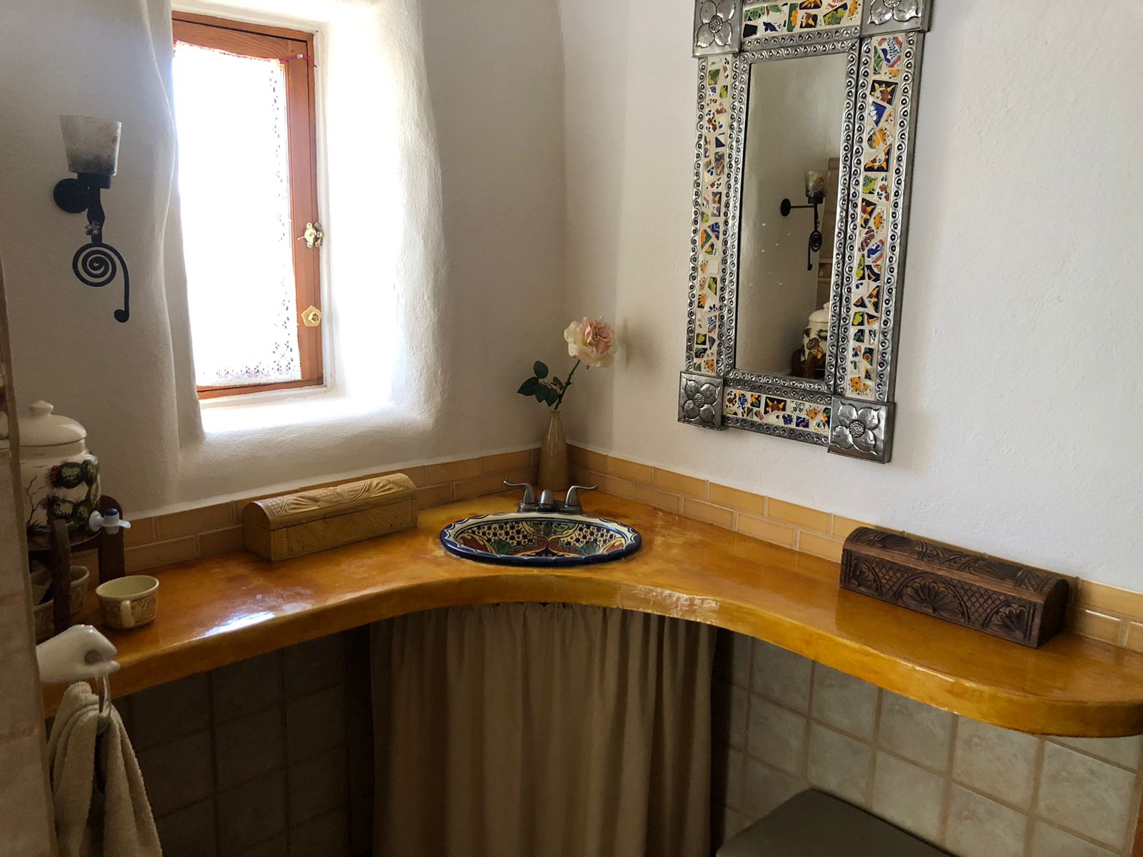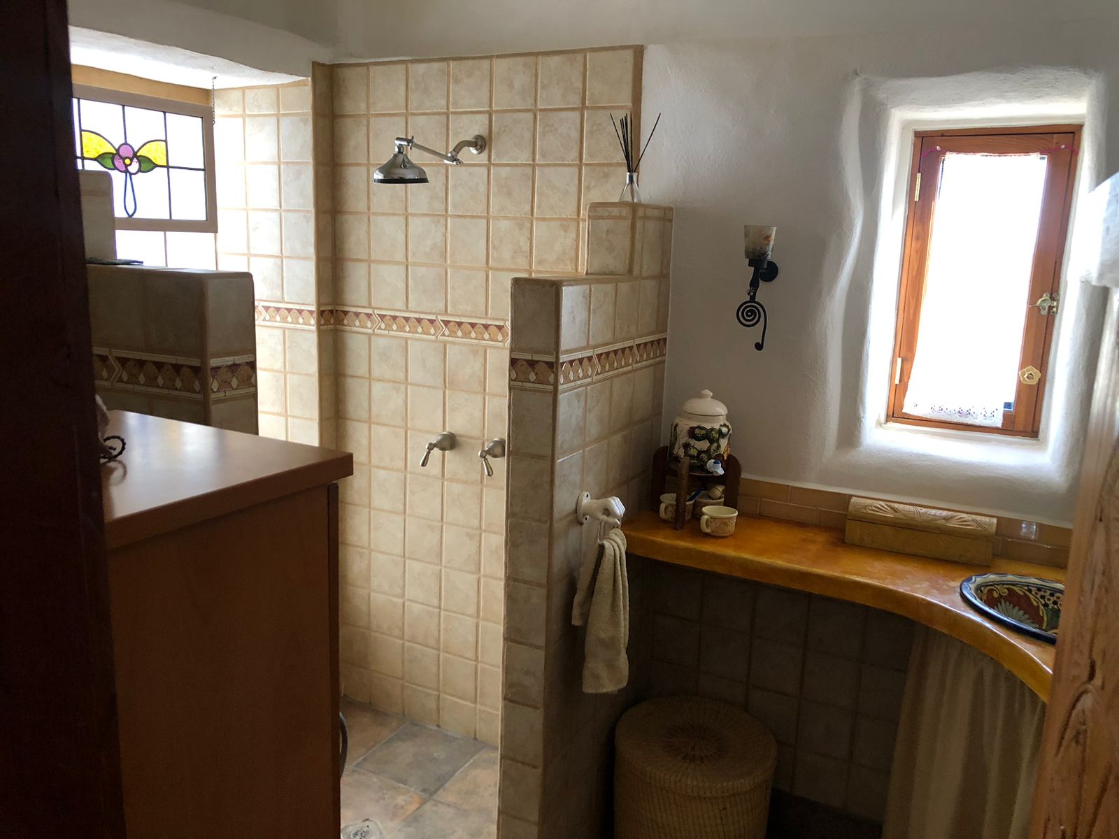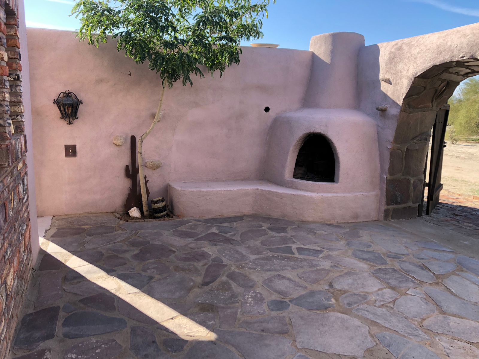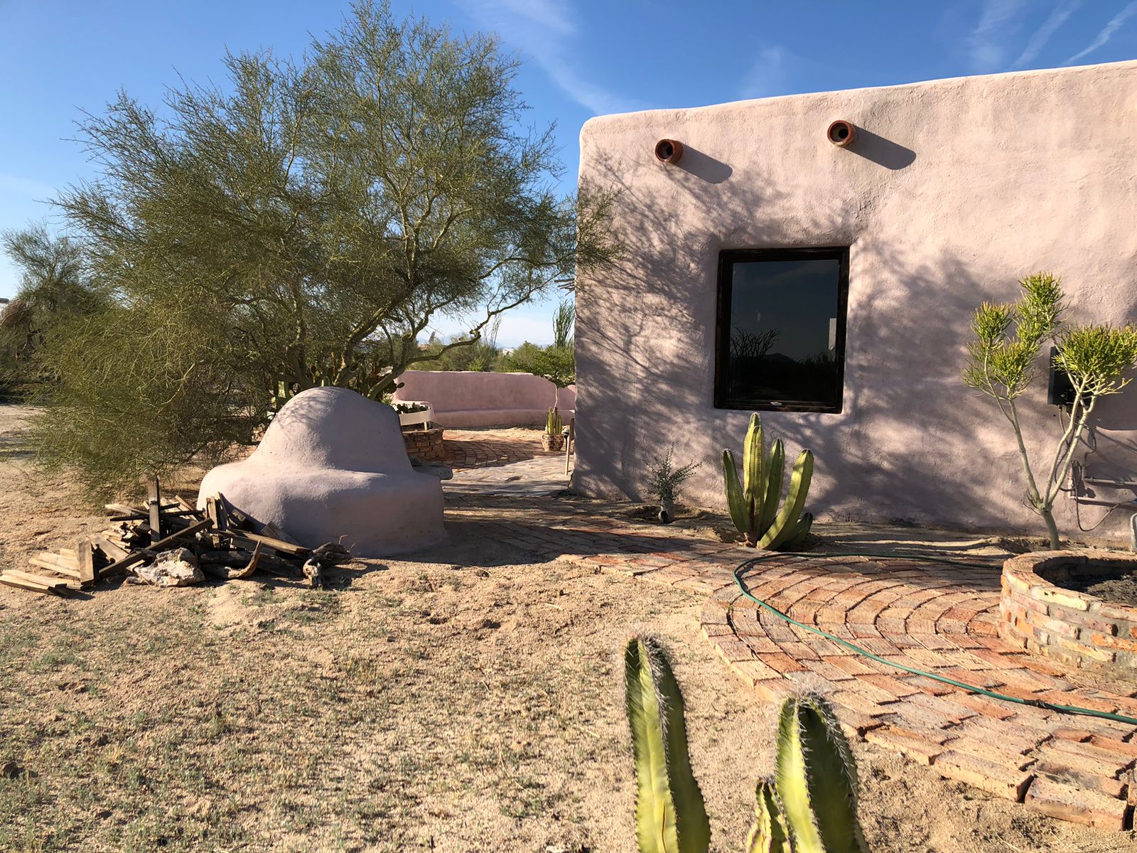 Desert charm meets sustainable living in this thoughtfully designed 1 bed / 1 bath straw bale casita on a spacious corner lot and a half (10,086 sq ft). Located just 1.5 miles from the community pool, this energy-efficient retreat blends comfort, character, and outdoor living at its best.
